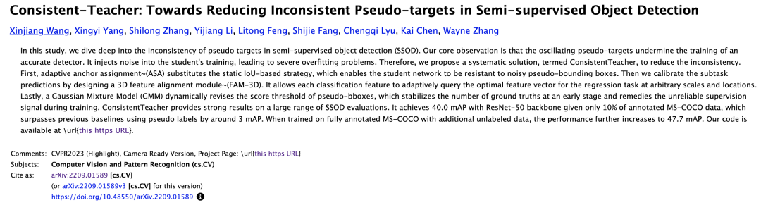 《Consistent-Teacher: Towards Reducing Inconsistent Pseudo-targets in Semi-supervised Object Detection》是一篇关于半监督目标检测的论文。该论文提出了一种新的方法,称为“Consistent-Teacher”,用于减少伪目标(pseudo-targets),这些伪目标是由于标签的不一致性而引入到训练中的错误对象。