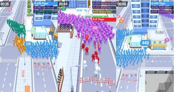 《拥挤城市》游戏画风简洁,跟之前很火的吞噬类的游戏玩法差不多,在整个进程中需要控制好人员的数量。在规定的时间内完成人员吞噬作战,决出最后的胜利者,尽最大的努力去聚集城市中全部的人类,它们都分布在各个角落里,轻松的将各个对手吞噬获胜。