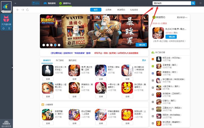 2、安装完成并打开,在靠谱助手的搜索框搜索“拥挤城市”,然后点击下载,安装到模拟器内。若模拟器没找到拥挤城市游戏,就直接下一个拥挤城市游戏安装包添加到靠谱助手里面哈!