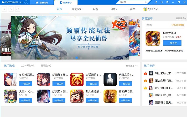 1、首先呢,我们要做好玩前的准备工作,在电脑上下载安装好天天模拟器。