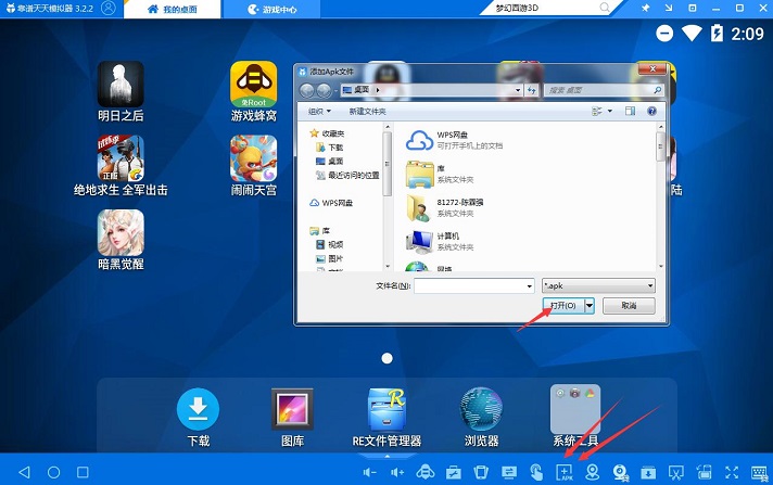 3、过一会儿你就可以看到已经安装好的梦幻西游3D游戏图标在天天模拟器我的桌面上。若模拟器没找到梦幻西游3D游戏,就在模拟器我的桌面界面,点击一下右下角apk按钮,到梦幻西游3D手游官网下一个游戏安装包添加到模拟器里面就可以啦!