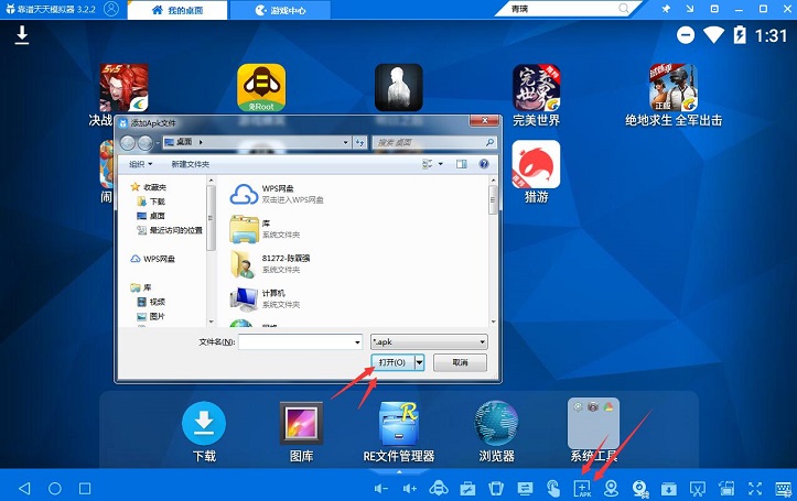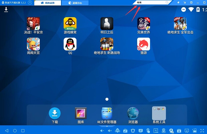 3、过一会儿你就可以看到已经安装好的青璃游戏图标在天天模拟器我的桌面上。若模拟器没找到青璃游戏,就在模拟器我的桌面界面,点击一下右下角apk按钮,到青璃手游官网下一个游戏安装包添加到模拟器里面就可以啦!