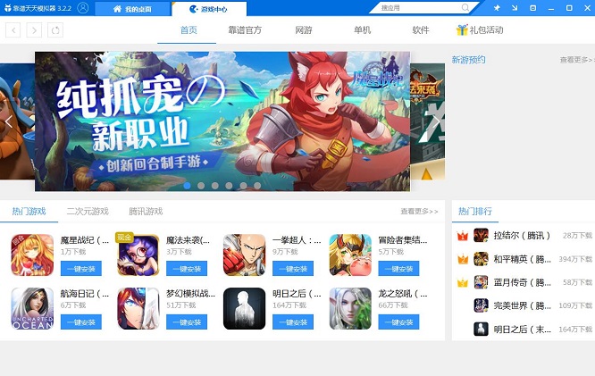 1、首先呢,我们要做好玩前的准备工作,在电脑上下一个模拟器。因为要想在电脑上玩手游,就必须在电脑上装个模拟器,这个是电脑玩手游的前提条件,模拟器就相当于手机的作用,小编这边以天天模拟器为例哈。