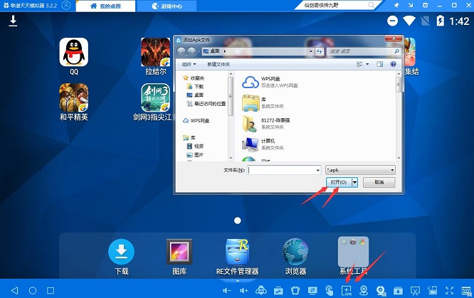 3、过一会儿你就可以看到已经安装好的仙剑奇侠传九野游戏图标在天天模拟器我的桌面上。若天天模拟器没找到仙剑奇侠传九野游戏,就在天天模拟器我的桌面界面,点击一下右下角apk按钮,到仙剑奇侠传九野手游官网下一个游戏安装包添加到天天模拟器里面就可以啦!