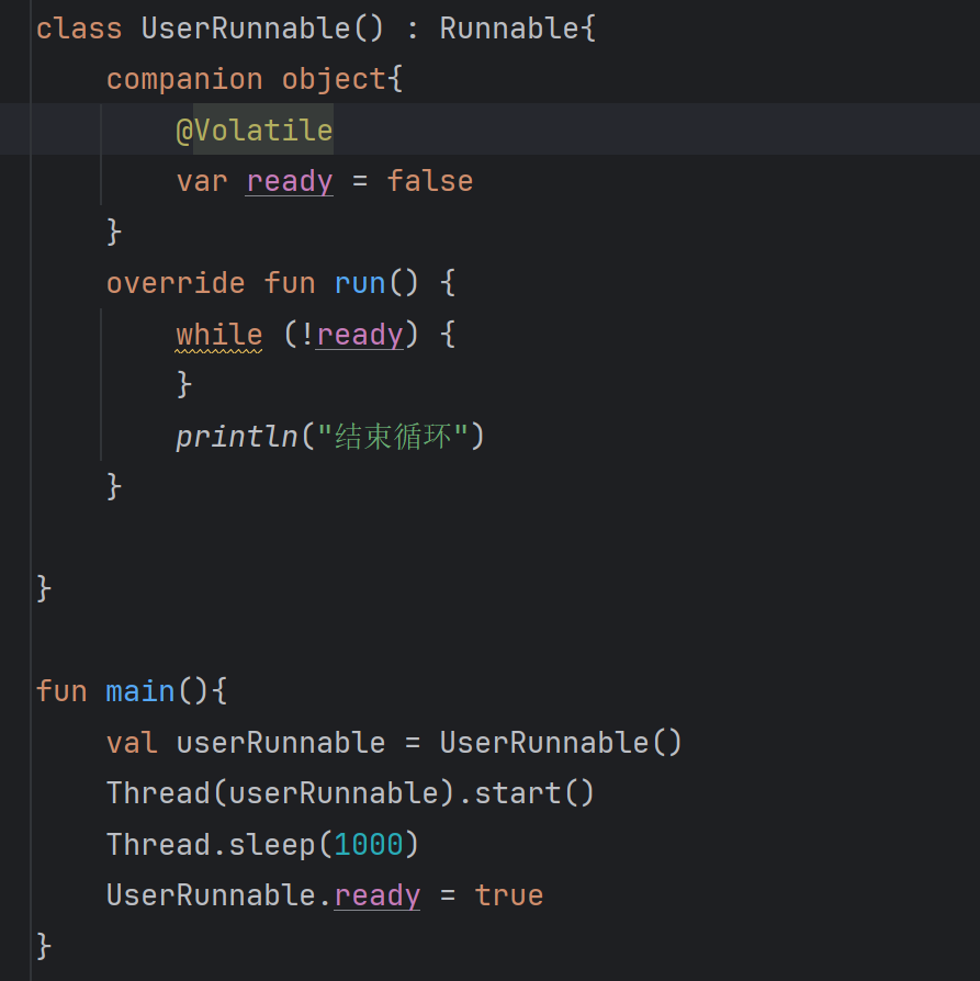 用法: 如果不添加Volatile注释,会导致子线程不知道ready的变化,从而一直陷入循环。