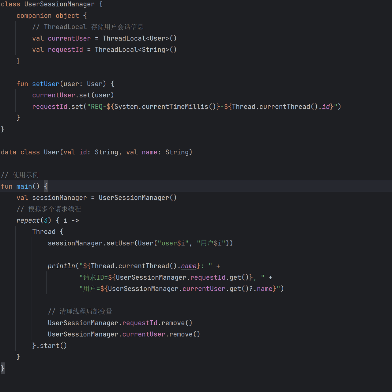 作用:为每一个线程都提供了变量的副本,适用于不想要多线程共享的场景。