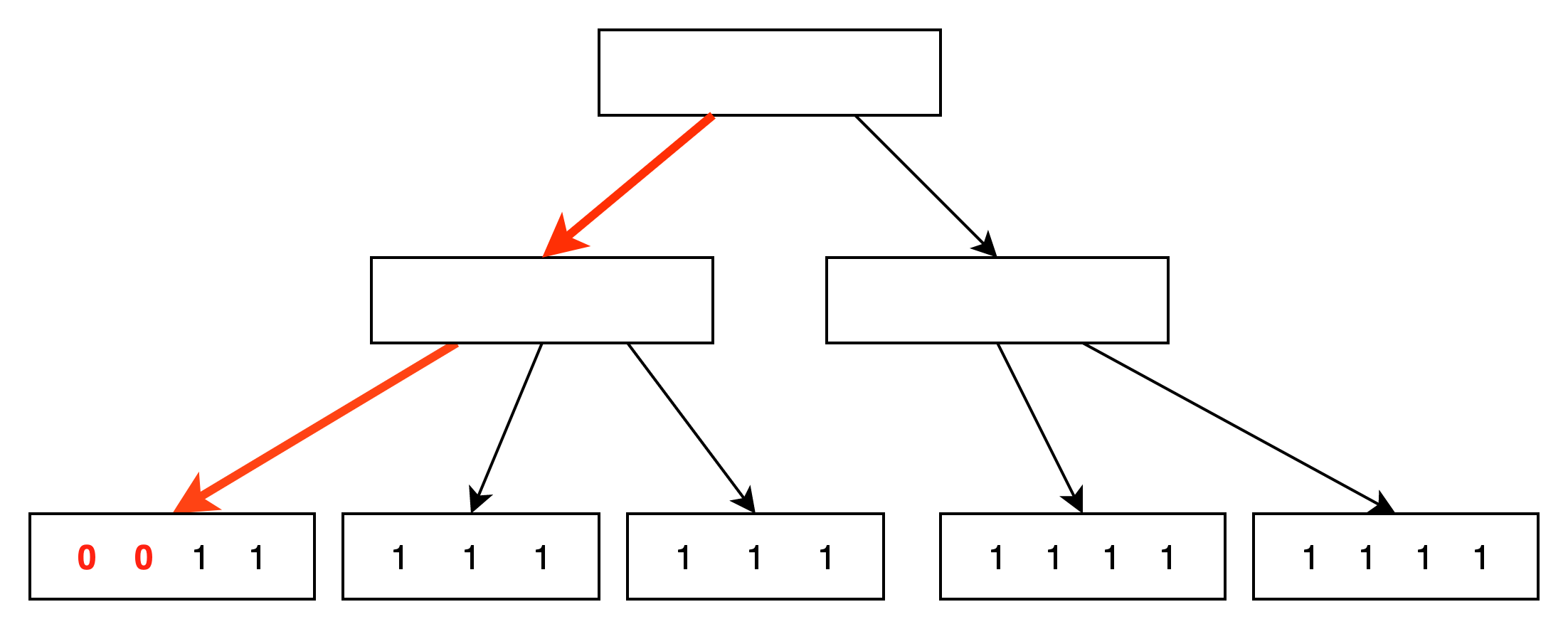 但我从B树索引的原理上思考,虽然只有0和1两个值,但是因为0的实时数量非常的少,而我们只需要找这个很少的值,所以B树可以锁定少的几条边定位到对应的数据: