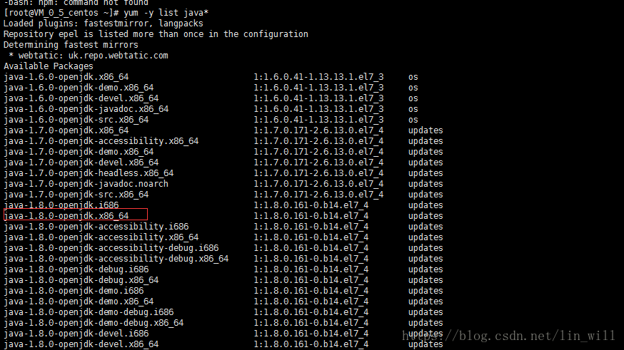 yum -y list java*(查看当前有哪些java版本可以安装)