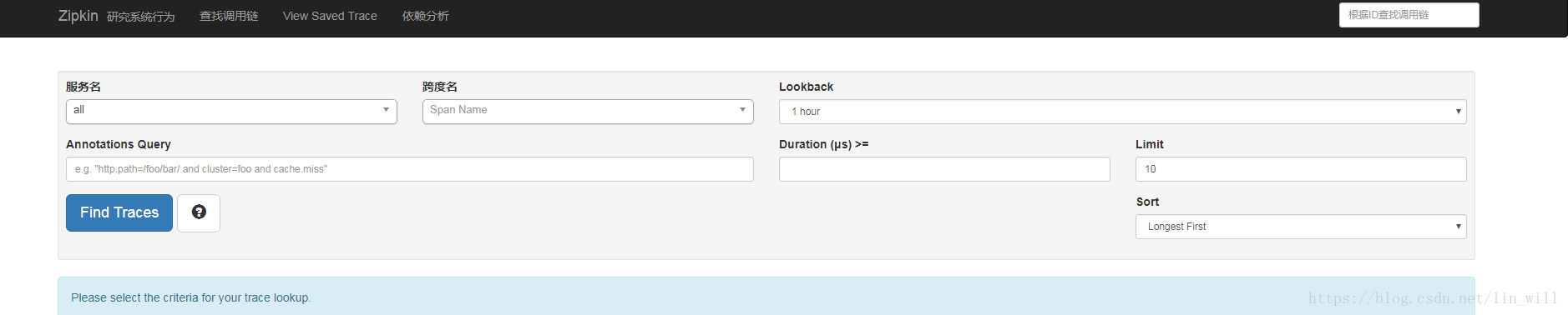 5、访问zipkin的ui界面(http://你的ip:9411 就可以看到如下页面)
