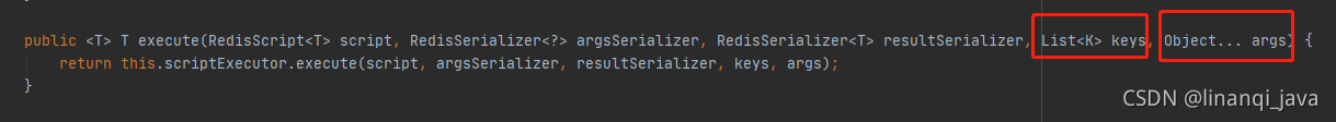 // 参数一:redisScript,参数二:key列表,参数三:arg(可多个)