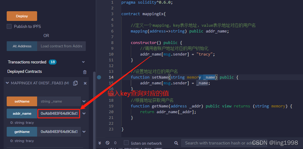 //定义一个mapping,key表示地址,value表示地址对应的用户名