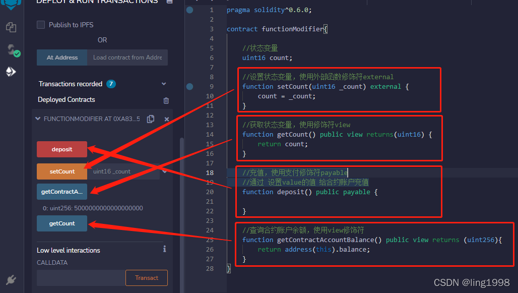 | pure | 状态变量访问控制类 | 合约不修改状态变量,也不读取状态变量,如上面例子 “比较两个字符串是否相等” 的例子 |