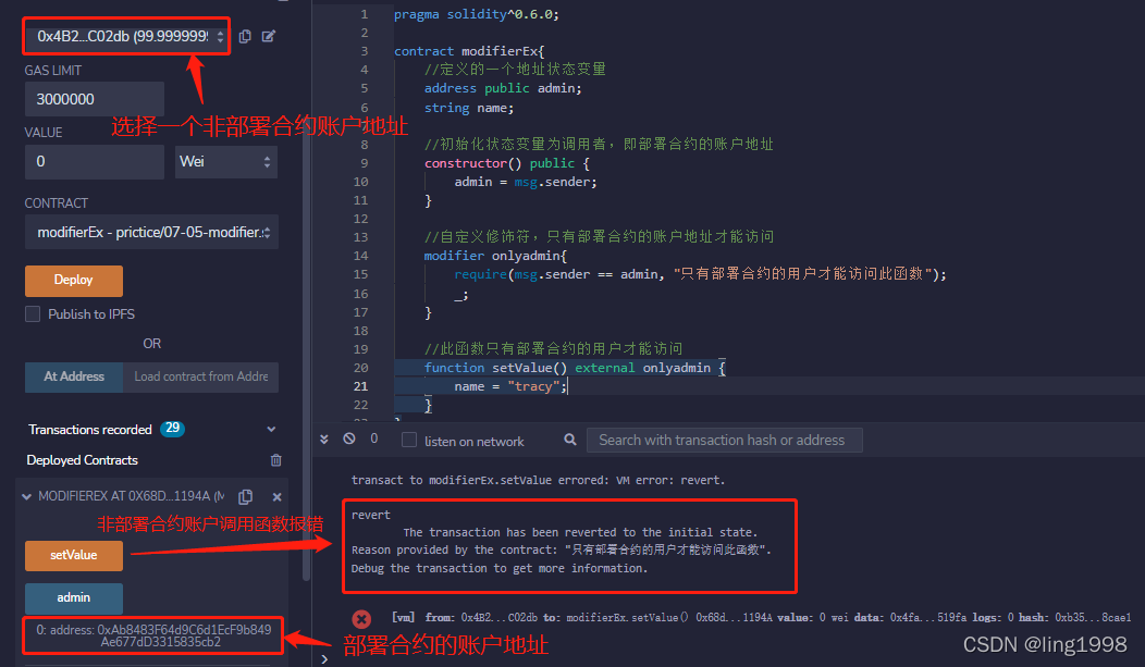 require(msg.sender == admin, "只有部署合约的用户才能访问此函数");