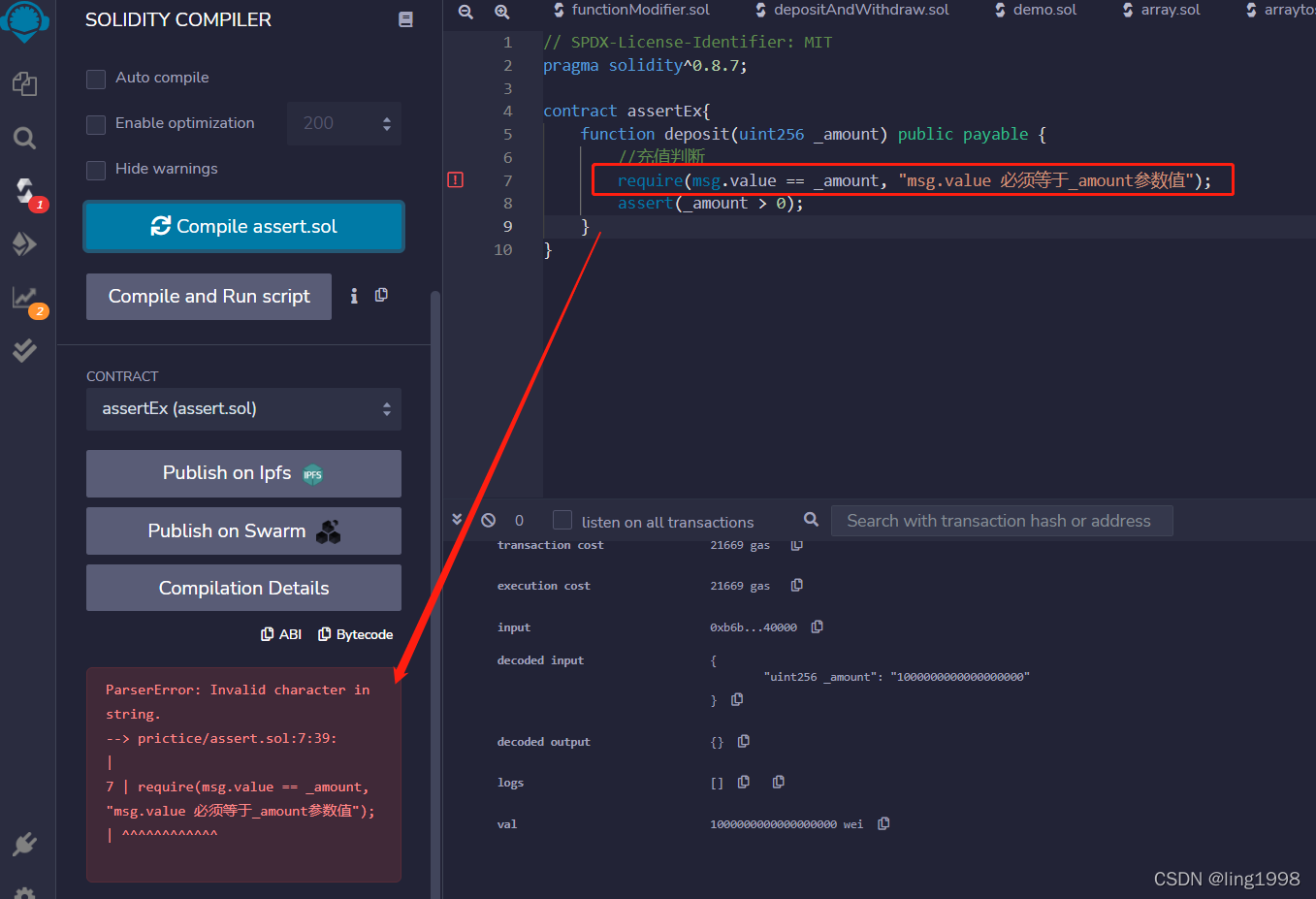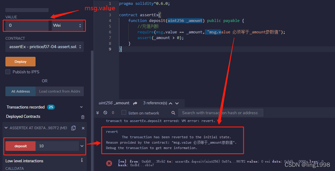 require(msg.value == _amount, "msg.value 必须等于_amount参数值");