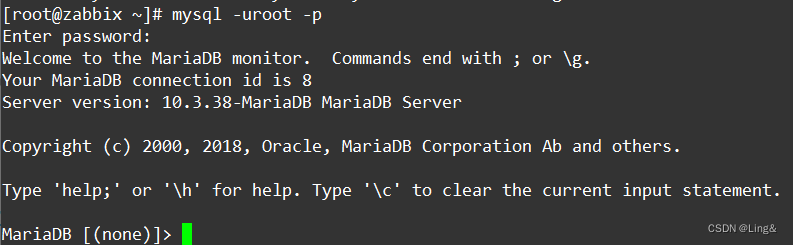 [root@zabbix ~]# mysql -uroot –p //登录数据库