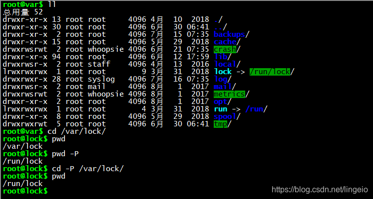 cd -P /var/lock 可以直接切换到这个目录链接的地址 /run/lock/