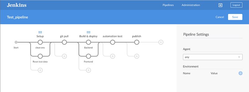 - 流水线编辑器:用于创建贯穿始终的持续交付流水线,是一种直观并可视化的流水线编辑器。