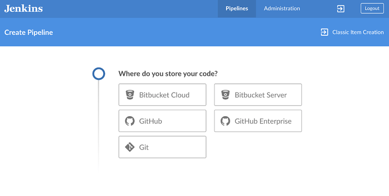 在 Blue Ocean 中单击 New Pipeline 创建新的流水线。