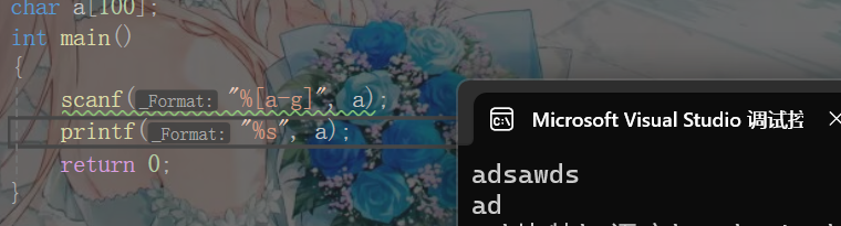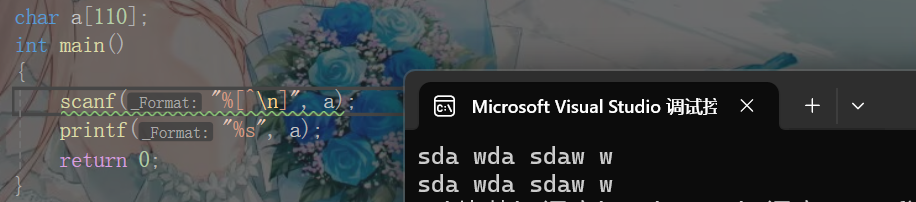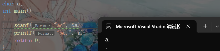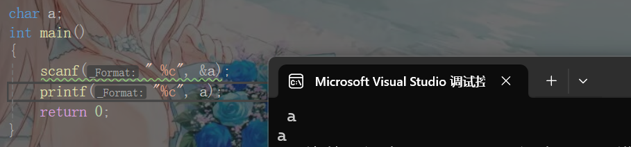 如果想要强制跳过字符前的空白字符,可以写成 " %c",这样即可跳过字符前的任意个空白字符,如图