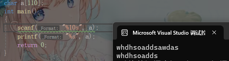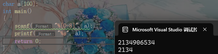 %[m]s,其中[m]是一个整数,表示读取字符串的最大长度,后面的字符将被丢弃,如图