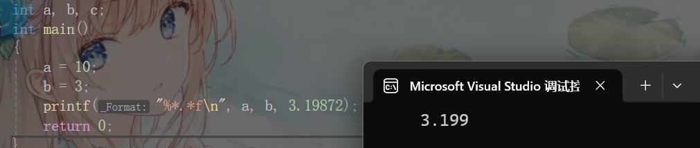 第二种方法(对比第一种来说更方便,因为宽度和保留几位可以用变量控制也可以直接输数字)