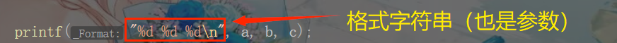 第一个 " " 那一块就是格式字符串,占位符也是写在格式字符串里面的,关于printf在后面会具体讲,就不展开了