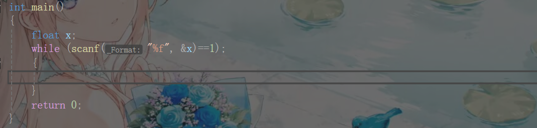 那知道了这些,那如果我们打算法时遇到有些题目要求一直输入,想停止就停止时就可以把scanf放入while语句中,若返回值为0或EOF,就跳出循环即可,具体如图(因为图示中输入的是一个数据,而scanf的返回值是成功读取的变量个数,所以只要判断是否等于1即可)