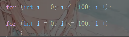 在具体讲循环前,先强调一点,就是循环语句末尾不要加 " ; ",在句末加 ";" 的话,就相当于循环里面执行的是空语句,如图,这俩个是等价的,相当于每次都在执行空语句
