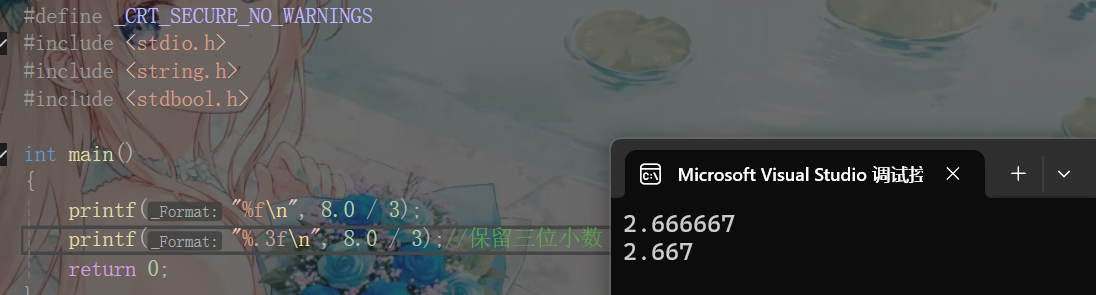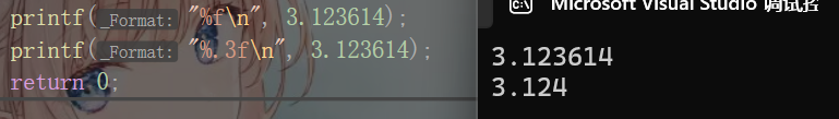 在数据类型前加.x即可,x为想要保留几位小数(会四舍五入),如图