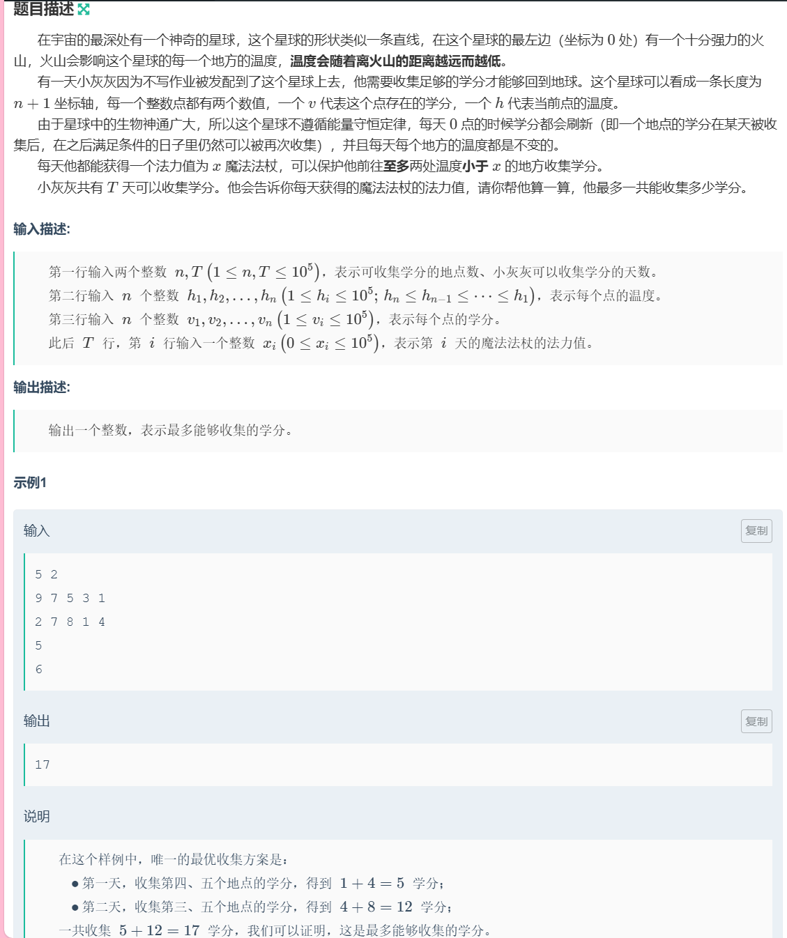 这题就是给你一个数组,下标越靠前,温度越高,也就是这个数组下标从小到大对应的温度是单调不递增的,然后这个数组每一个位置都会有一个价值,那么初始的数组就搭建完成了