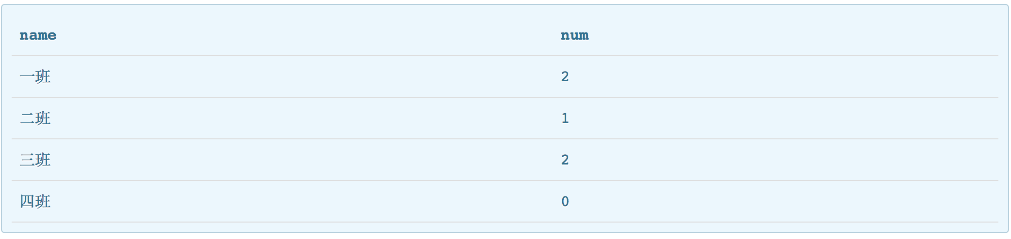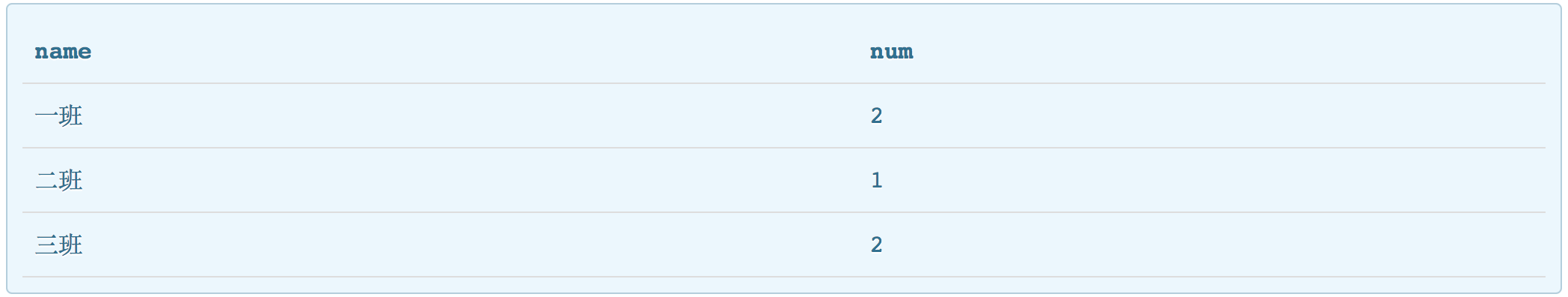 2: 只统计‘一班’的学生数量