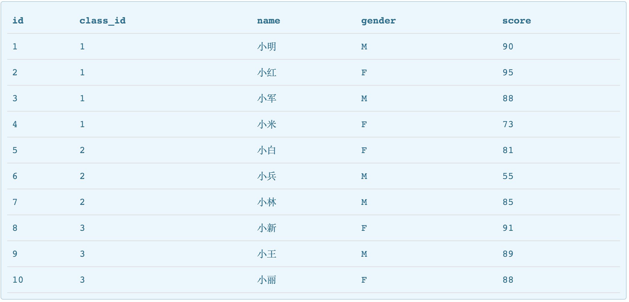 利用廖雪峰提供的在线工具,利用student表和classes表我们做一个测试,