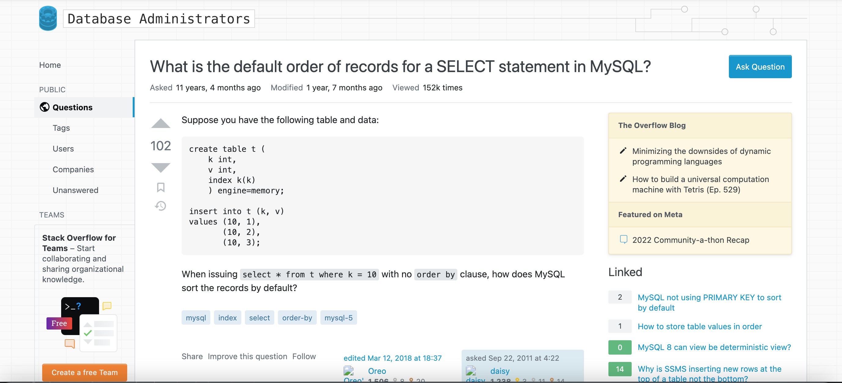 MySQL使用SELECT 语句不加ORDER BY默认是如何排序的