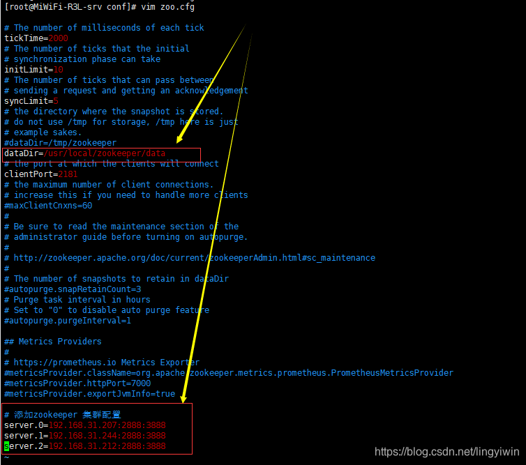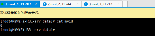 myid内容和上面 server0=192.168.31.207:2888:3888 配置上面的server后面的编码一直。注意ip地址要对应。