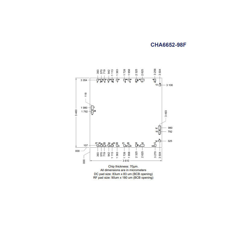 CHA6652-98F 是一款工作在 21-27.5GHz 频段的 GaAs 单片微波集成电路 (MMIC) 高功率放大器。内置差分模式功率检测器,如同敏锐的侦探,时刻监测着输出功率的变化。