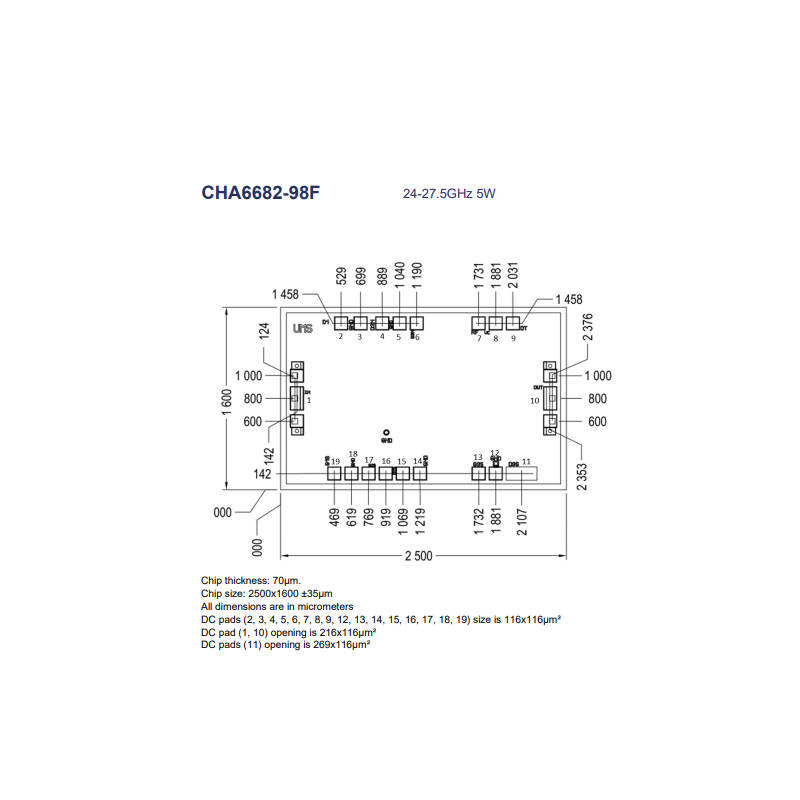 CHA6682-98F 拥有 5W 的强大输出功率,就像力拔山兮气盖世的勇士,能够将信号放大到令人惊叹的程度。而 32% 的高功率附加效率,更是体现了它节能高效的特性,将电能转化为射频功率的能力无人能及。