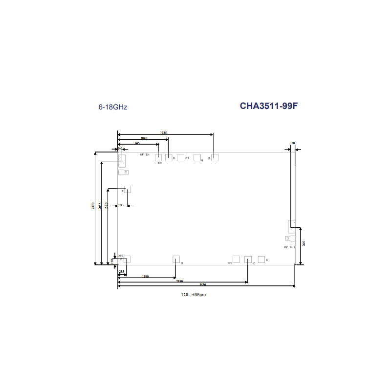 CHA3511-99F 的内部结构巧妙,由一个单刀单掷 (SPST) 开关和一个两级行波放大器级联而成。这种结构赋予了它独特的功能:通过控制 E2 和 F 引脚的电压,用户可以将芯片配置为两种不同的模式。
