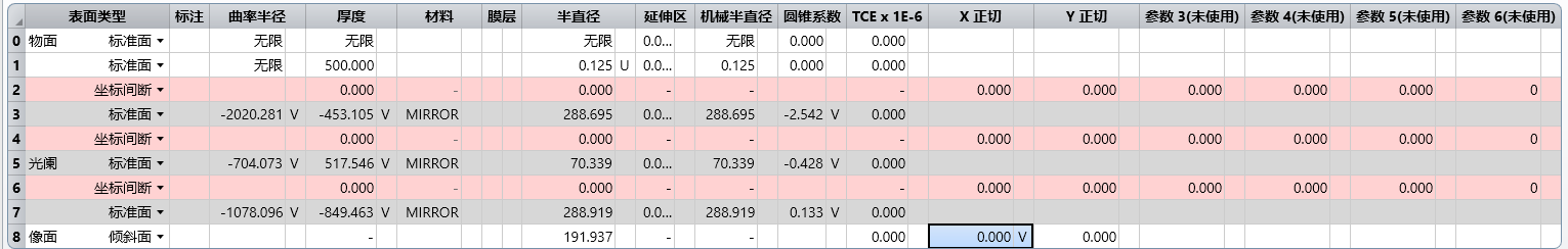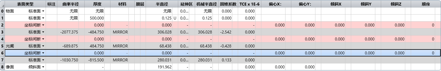 去掉原初始孔径的预先设置值,并插入相应坐标间断面,使得后面对应的偏心和角度可以进行优化。