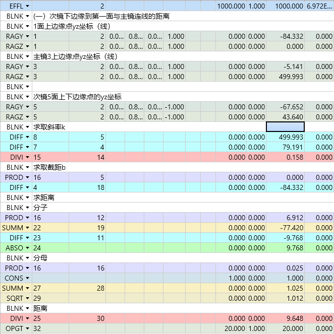 DIFF 8-5:计算主镜与面1的 Z坐标差(ΔZ)。