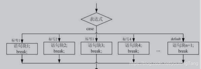 switch case语句判断一个变量与一系列中某个值是否相等,每一个值则称之为一个分支。
