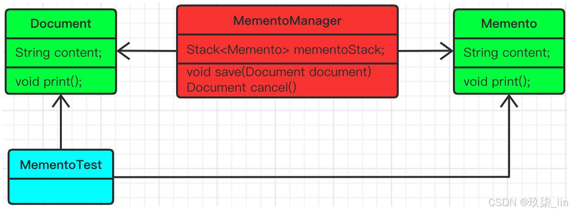 定义: 在不破坏封装性的前提下,捕获一个对象的内部状态,并在该对象之外保存这个状态,这样以后就可以将该对象恢复到原先保存的状态。当你需要让对象返回之前的状 态时(例如:你的用户请求“撤销”),就使用备忘录模式