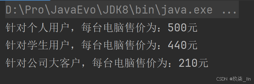 System.out.println(String.format("针对%s,每台电脑售价为:%s元", personVisitor.visiterName(), personVisitor.price()));