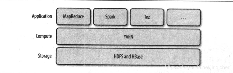 yarn提供api来请求和使用集群的资源,但是用户不直接使用这些api,而是使用下图中 mr spark tez等程序会架构在yarn之上。