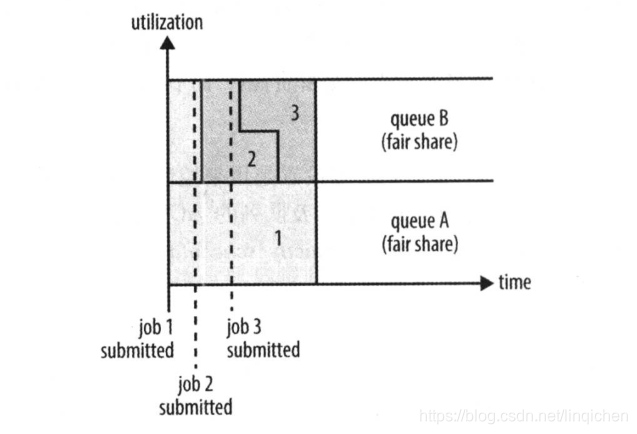 如果没有该配置文件,公平调度器的工作策略同之前描述的一样:每个应用放置在一个以用户名命名的队列中,队列是用户提交第一个应用时动态创建的。
