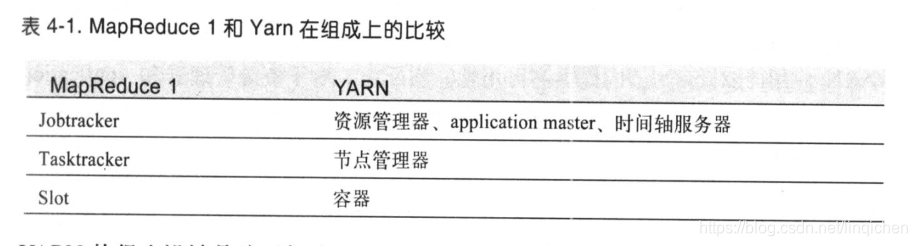 | 利用率 | 每个taskTracker都分配有固定长度的slot,这些slot是静态的,分配的时候就固定好了是map slot和reduce slot,map的只能运行map作业,reduce slot只能运行reduce。 如果 | 节点管理器管理的是整个资源池,能够按需分配资源,而不是请求一个不可分割的,可能会太大(就会浪费)或者太小(任务失败)的slot |