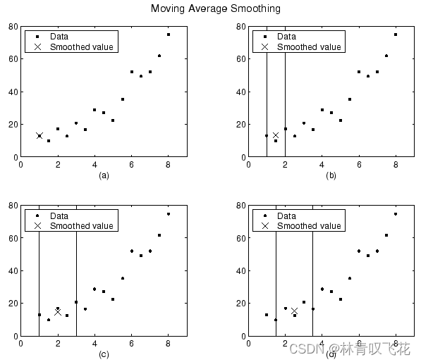 生成的数据集的前四个数据点的平滑值和跨度如下所示,形象表示平移的原理