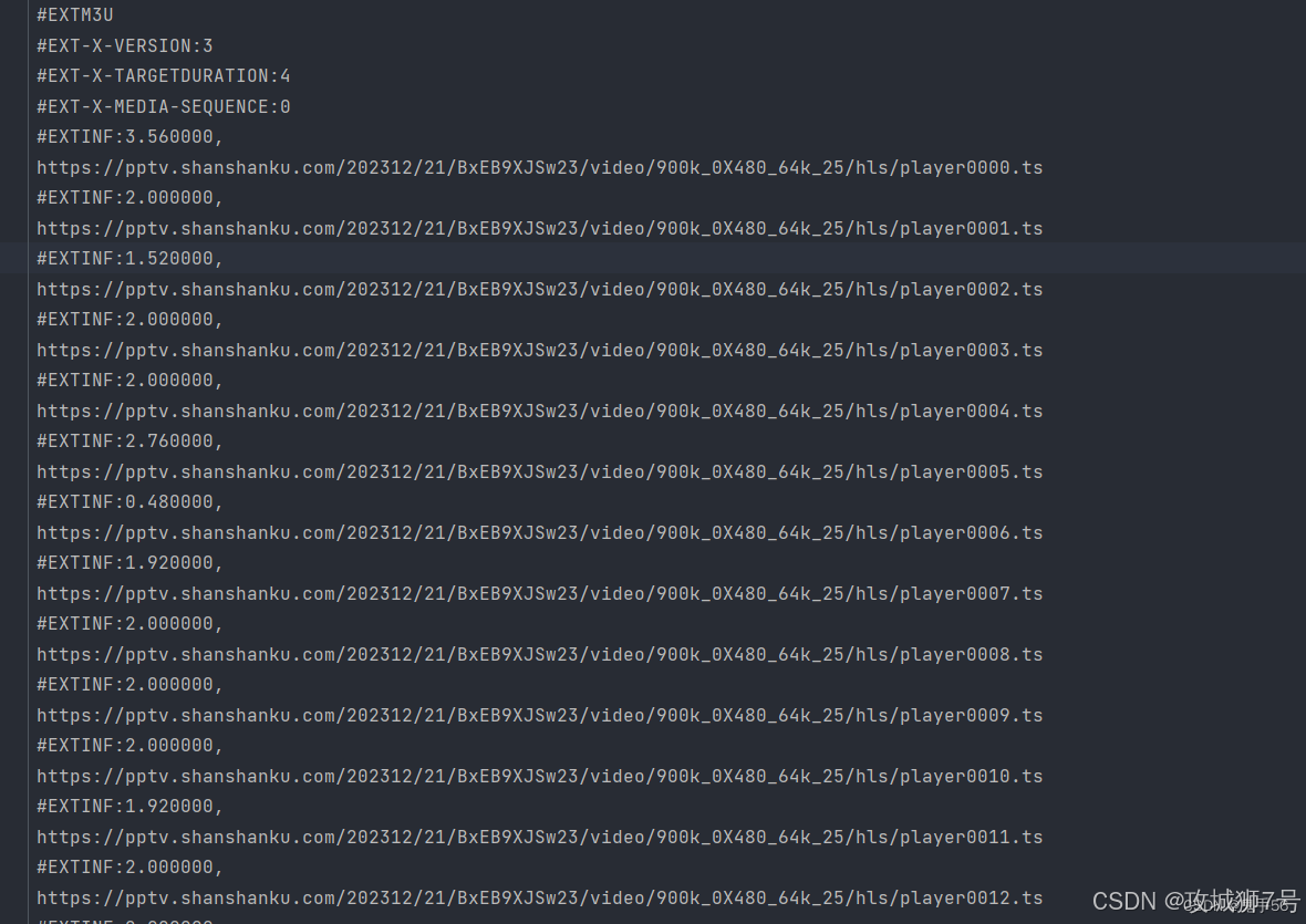 该文件包含了所有视频切片的URL。里面最重要的就是每一个ts文件的路径了,而且这个ts文件是没有加密的。