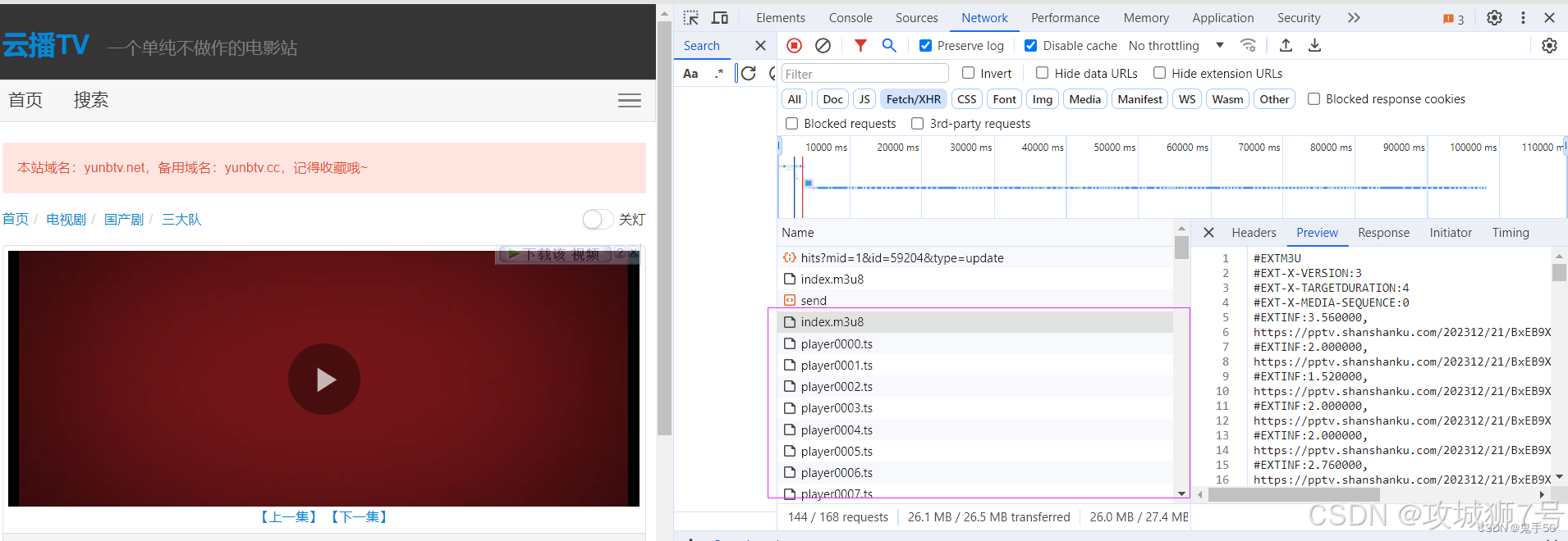 很明显这里是一个网页的路径,对应一个新的M3U8文件