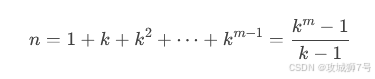 题目要求找到最小的好进制 k,使得 n 在 k 进制下的表示全为 1。换句话说,我们需要找到一个 k 和 m,使得: