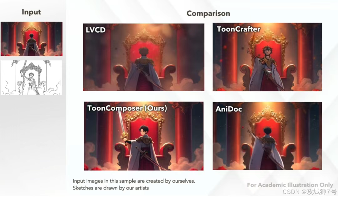 然而,一场由AI驱动的变革正在悄然发生。近日,由香港中文大学、腾讯PCG应用研究中心(ARC Lab)和北京大学的学者们联合推出的一款名为 ToonComposer 的工具,正试图彻底颠覆这个传统的工作流程。它提出的核心理念听起来就像是来自未来:动画师只需要提供一张彩色的参考图来定下风格,再加上几张关键的动作草图,ToonComposer就能自动生成一段完整、流畅且风格统一的高质量动画。